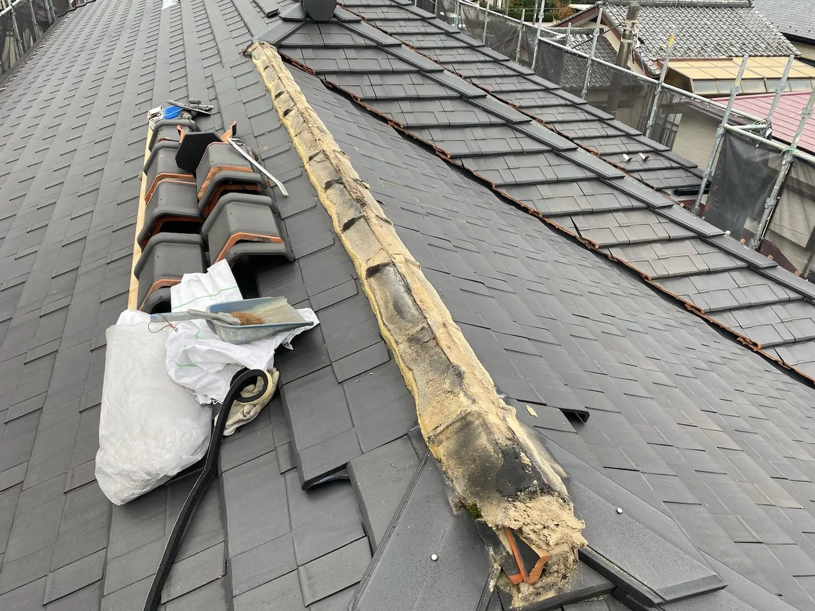塗装はしない瓦屋根ですが、棟の中にある木材が腐敗していました。