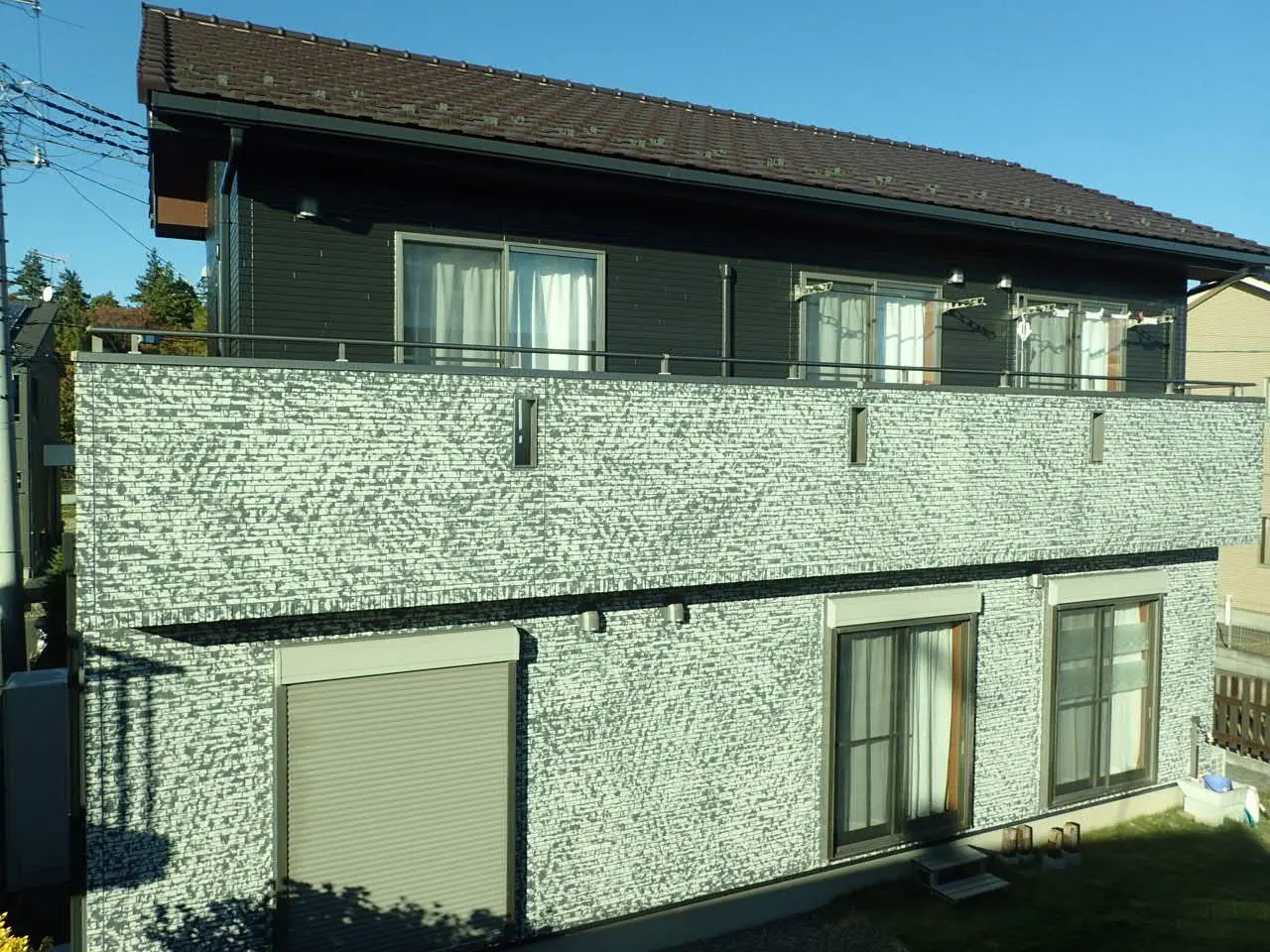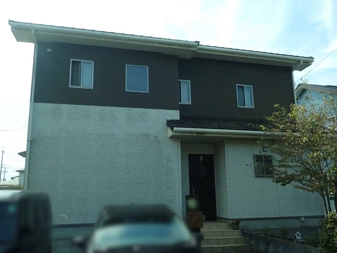 【つくば市】2種類のサイディング貼りを「単色塗り」と「美壁カラー工法」で塗り分け、デザイン性の高い高級感溢れる仕上がりになりました。