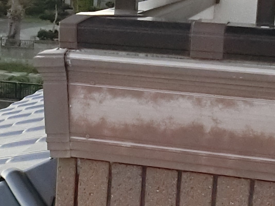 幕板・雨樋は色あせとともに破損していたのと、シーリングもひび割れのように隙間ができていました。