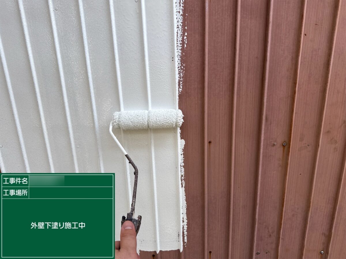 更に、防錆性と遮熱性を持つ金属下地用下塗り材で、下地と塗料の密着性を高めます。