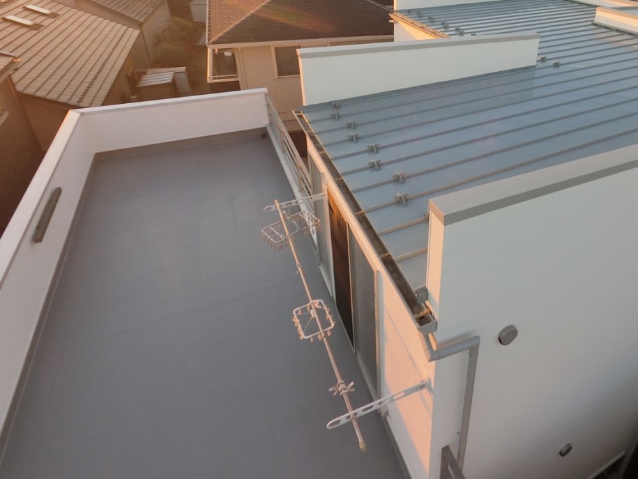 錆びや汚れが目立っていた屋根とベランダも塗装し綺麗になりました。清々しい外観です。