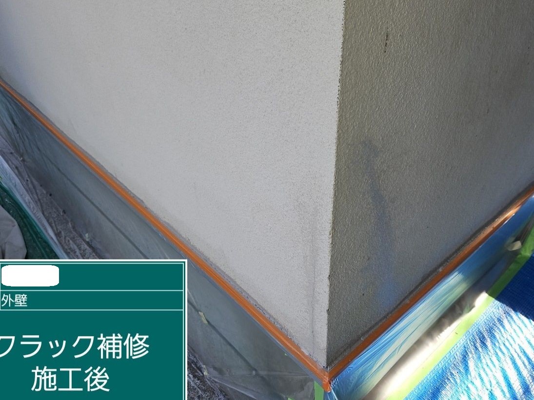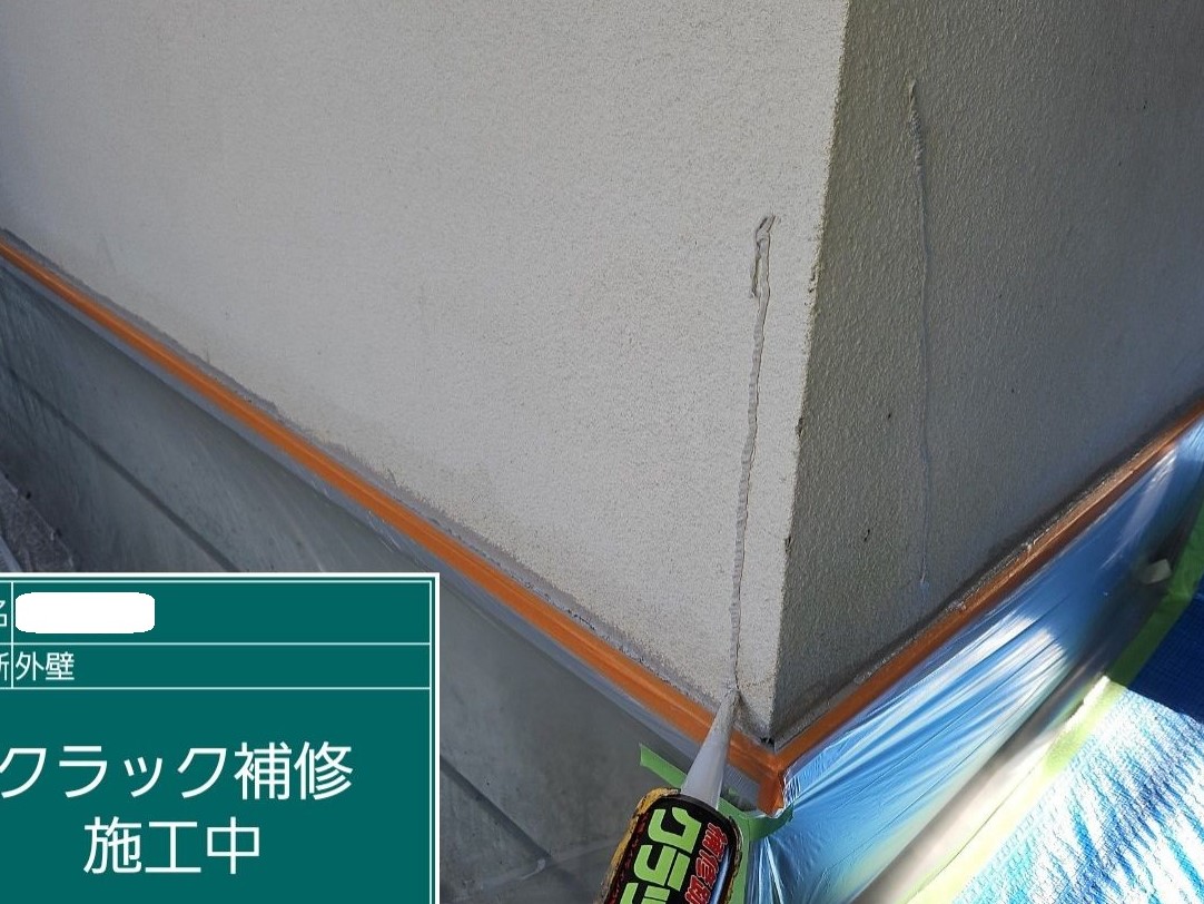 ひび割れにクラック補修材を埋め、外壁の凸凹に合わせて伸ばして仕上げます。