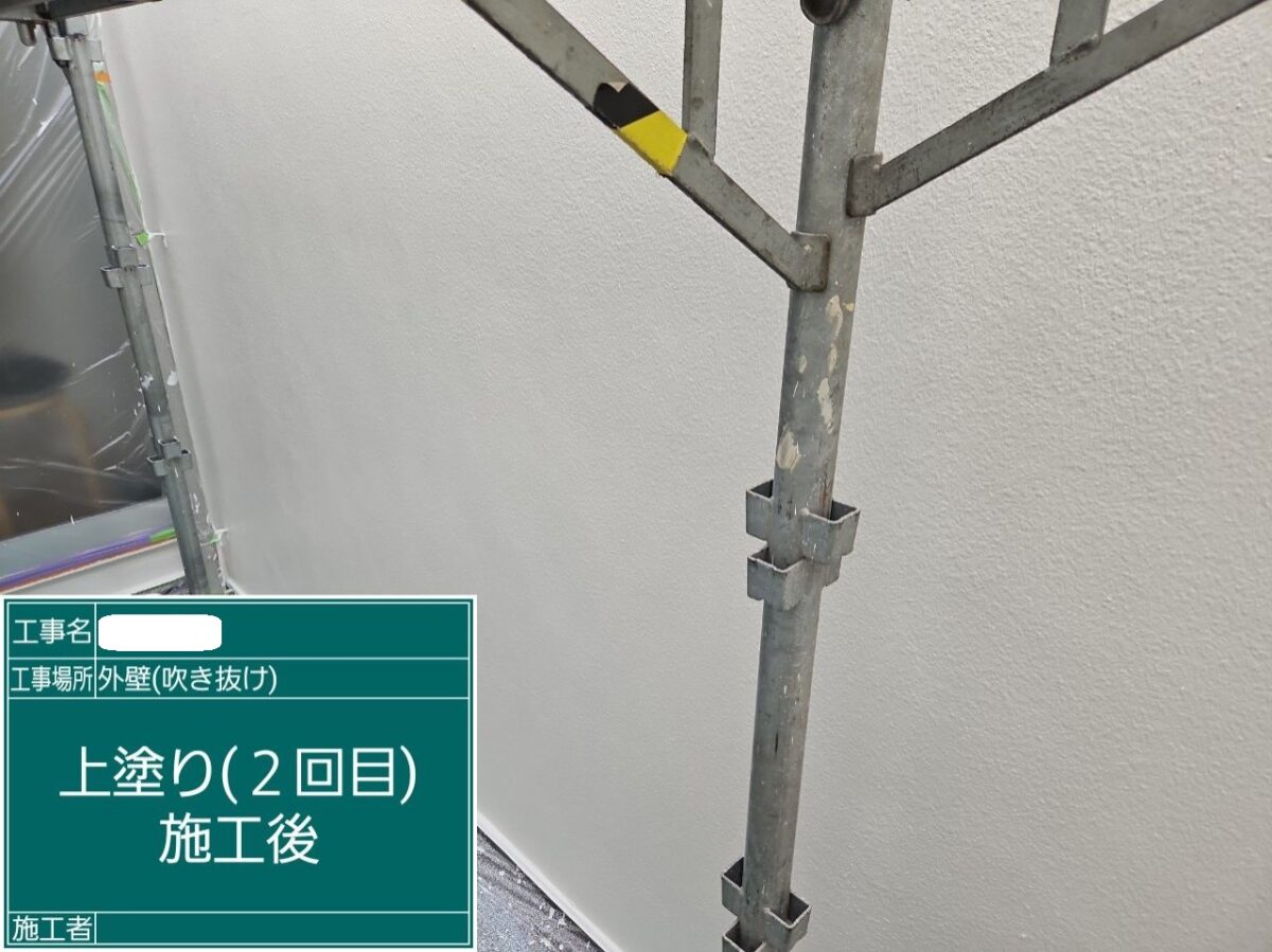 下塗りと上塗りを2回ずつの施工で重厚感がでました。汚れの付着を抑えるため、長く遮熱性を発揮する「超低汚染リファイン艶消し1000MS-IR」の塗料を使用。温度上昇を抑え快適な生活環境を維持できます(※建物の構造・耐熱構造・窓の数等により温度変化の程度には差がでます)