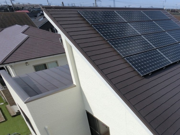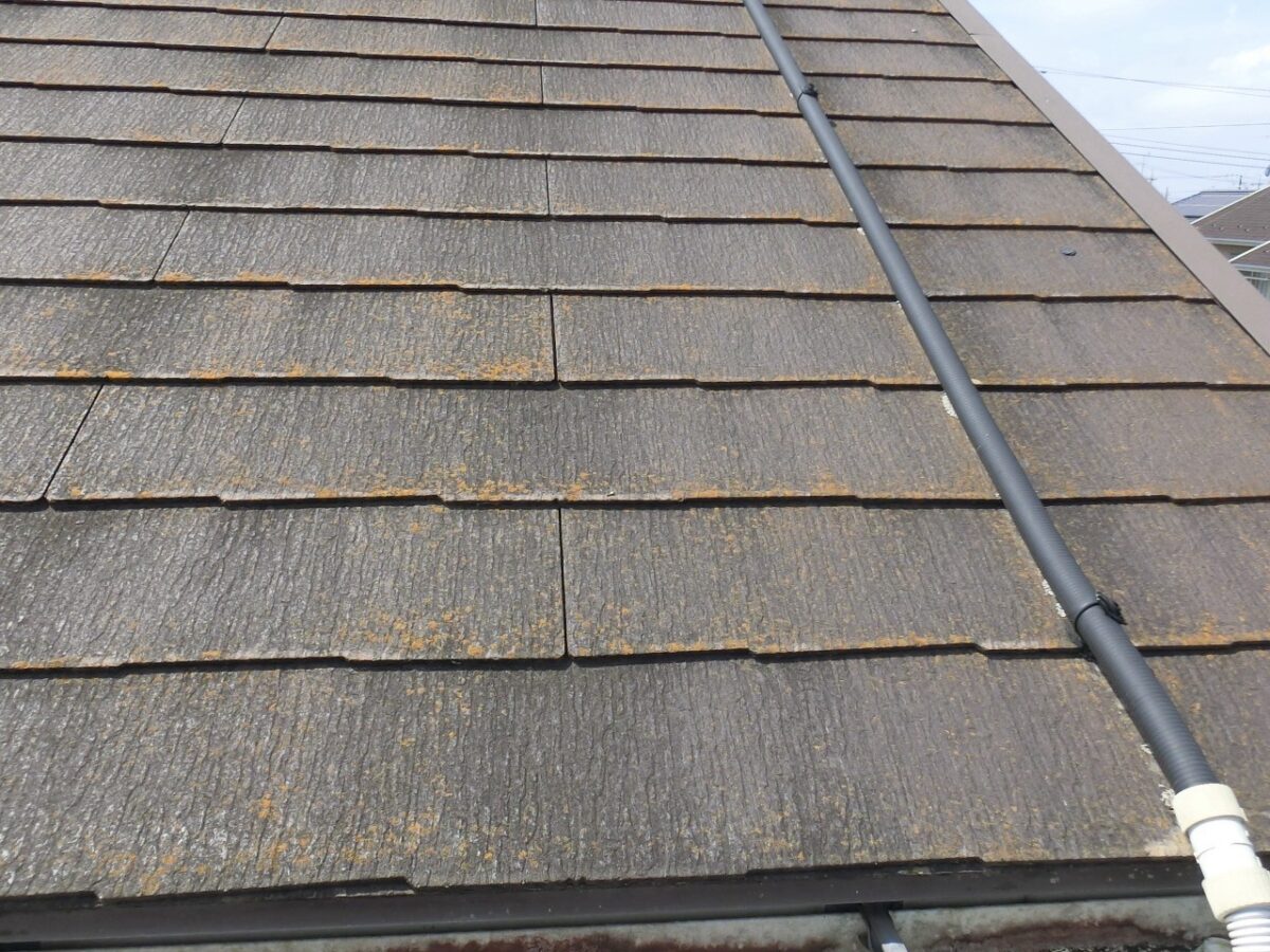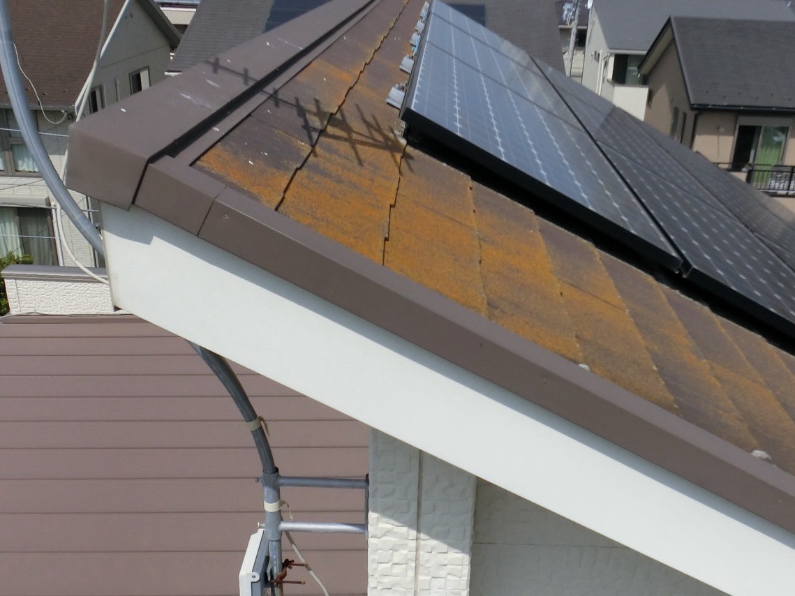 スレート屋根と金属屋根があり、それぞれに適した下塗り材を使用し、上塗りに遮熱性があり変色も防ぎ、色彩・光沢を長期間保持する塗料(スーパーシャネツサーモF)を2度重ね塗りしました。赤みの入ったブラウンの「ラセットブラウン色」。景観バッチリです👌
