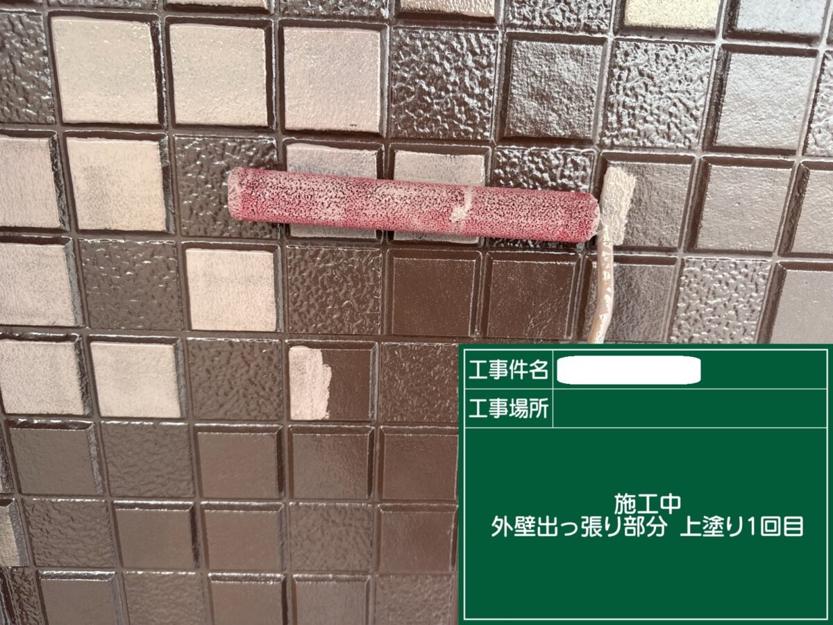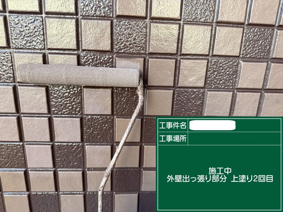 凹凸分けず一面に下塗り剤を塗布した後、上塗り剤を毛先の長いローラーで一面に「ヤララブラウン」を2度重ね塗り。