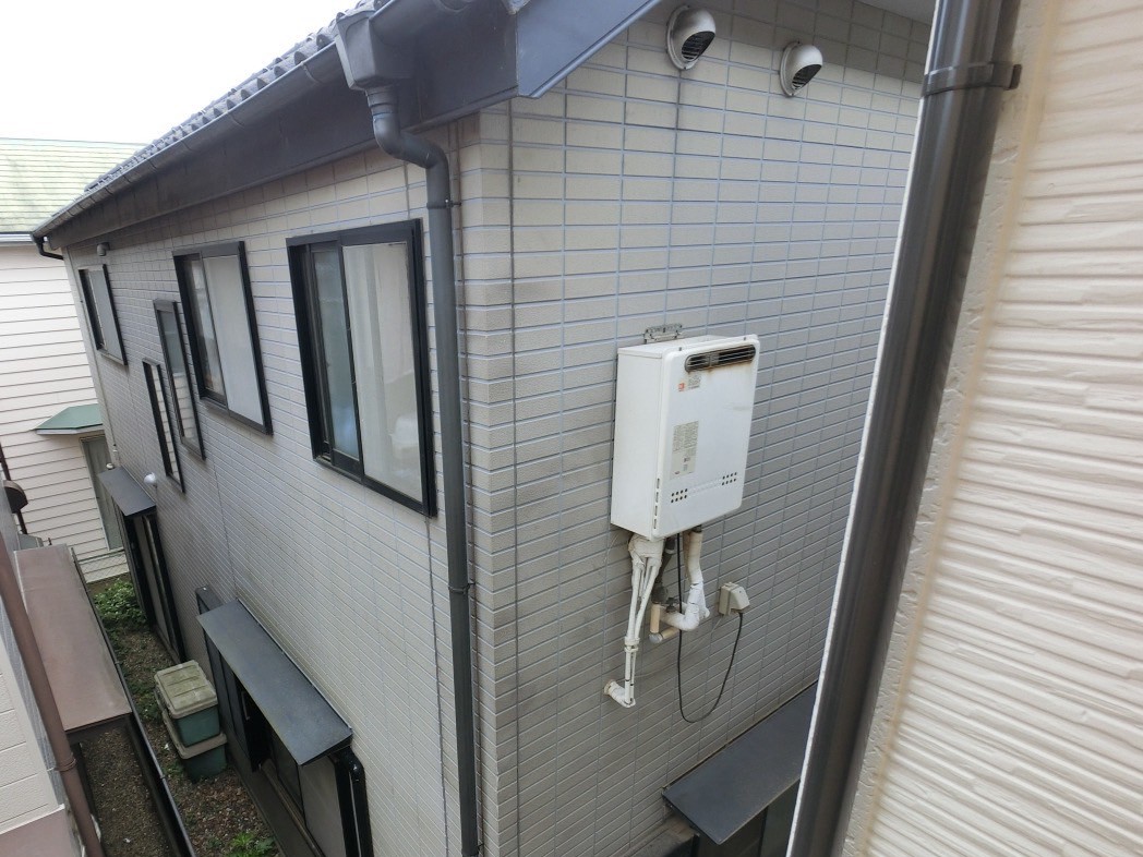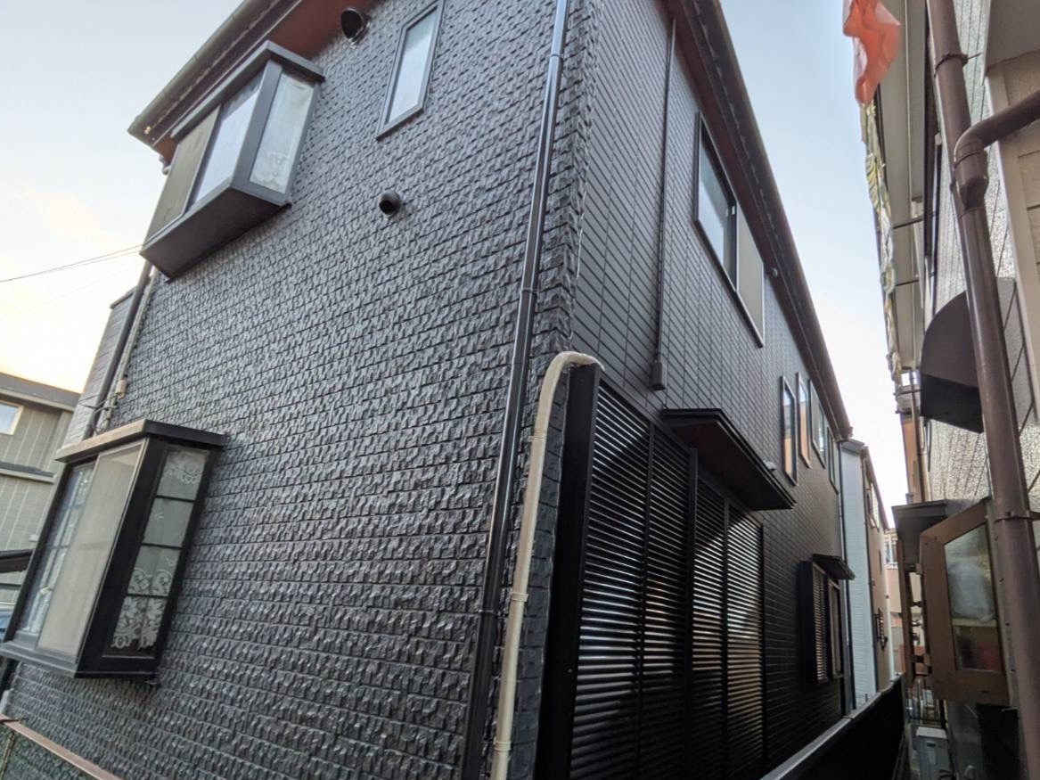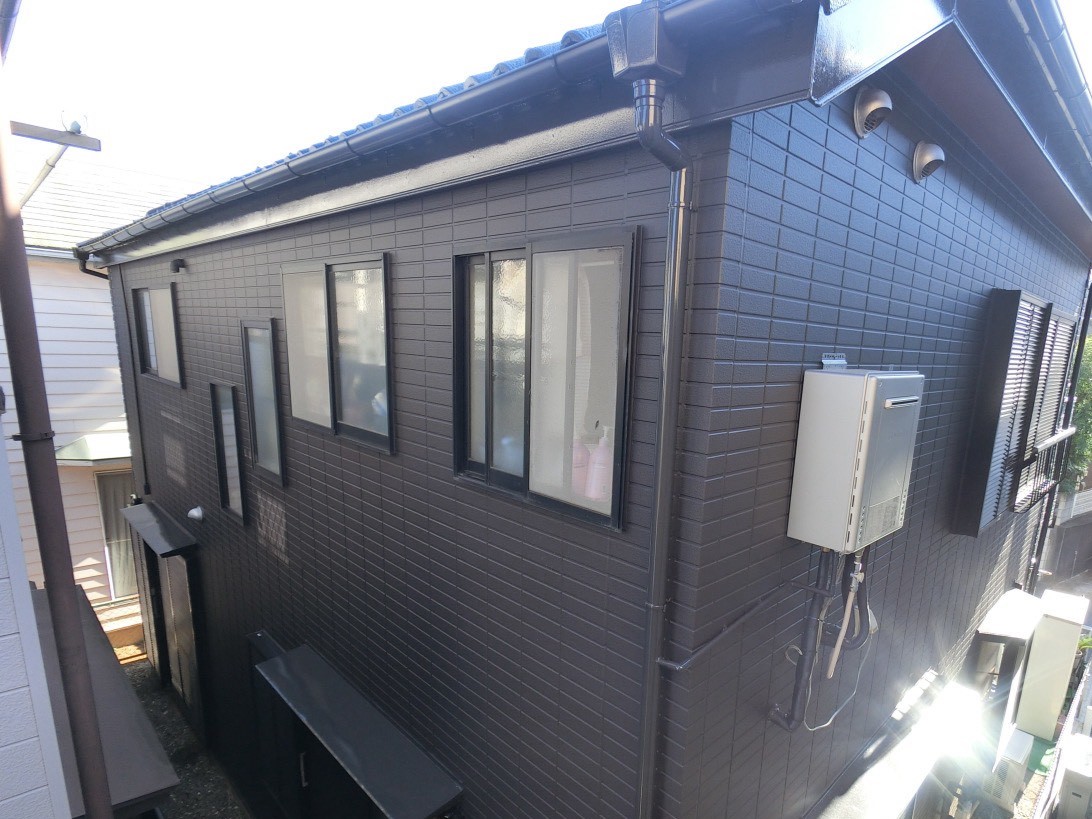 西北側は塗装で、光沢を抑えたマットな質感で高級感のある仕上がりに。汚れが付着・定着しにくいアステックペイント超低汚染リファイン艶消し塗料「チャコール」色です。※給湯器も交換しています。