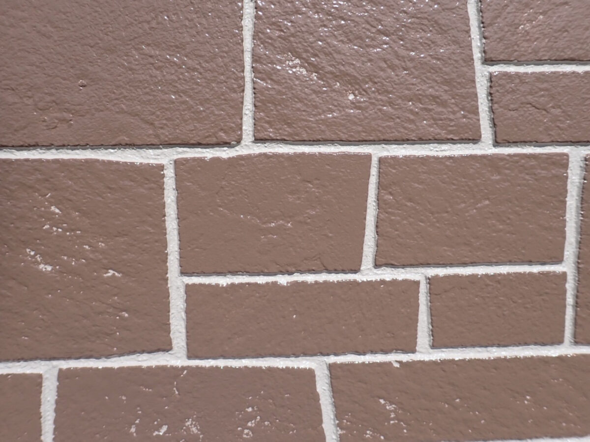 マルチカラーはベースを「バーチグレー」で塗装。ベースの上から塗る仕上げ色には、ベランダ外壁「チョコレートブラウン」、ベランダ外壁以外のタイル調「コーヒーブラウン」で仕上げました。
