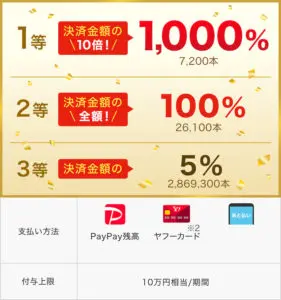 ペイペイ残高でお支払いすると、最大1000%戻ってくる!