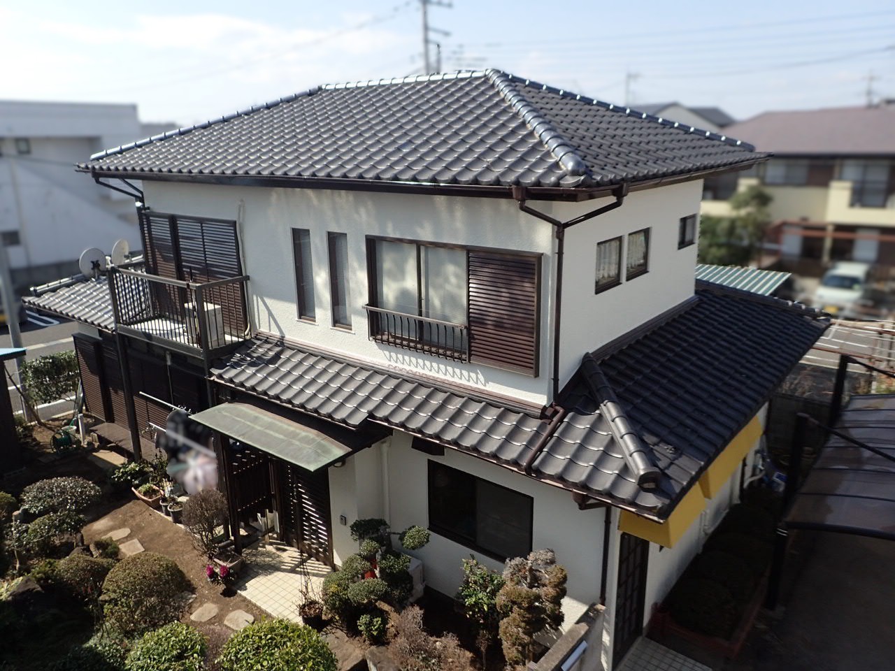 色褪せは防水機能が失われているサインです。下塗り不要の塗料にて、重厚感のある「アイアンバーグ色」を2回塗り、どこから見てもピカピカに仕上がりました。