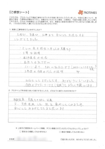 見積もり、色選び、工事まで安心してお任せすることができました。